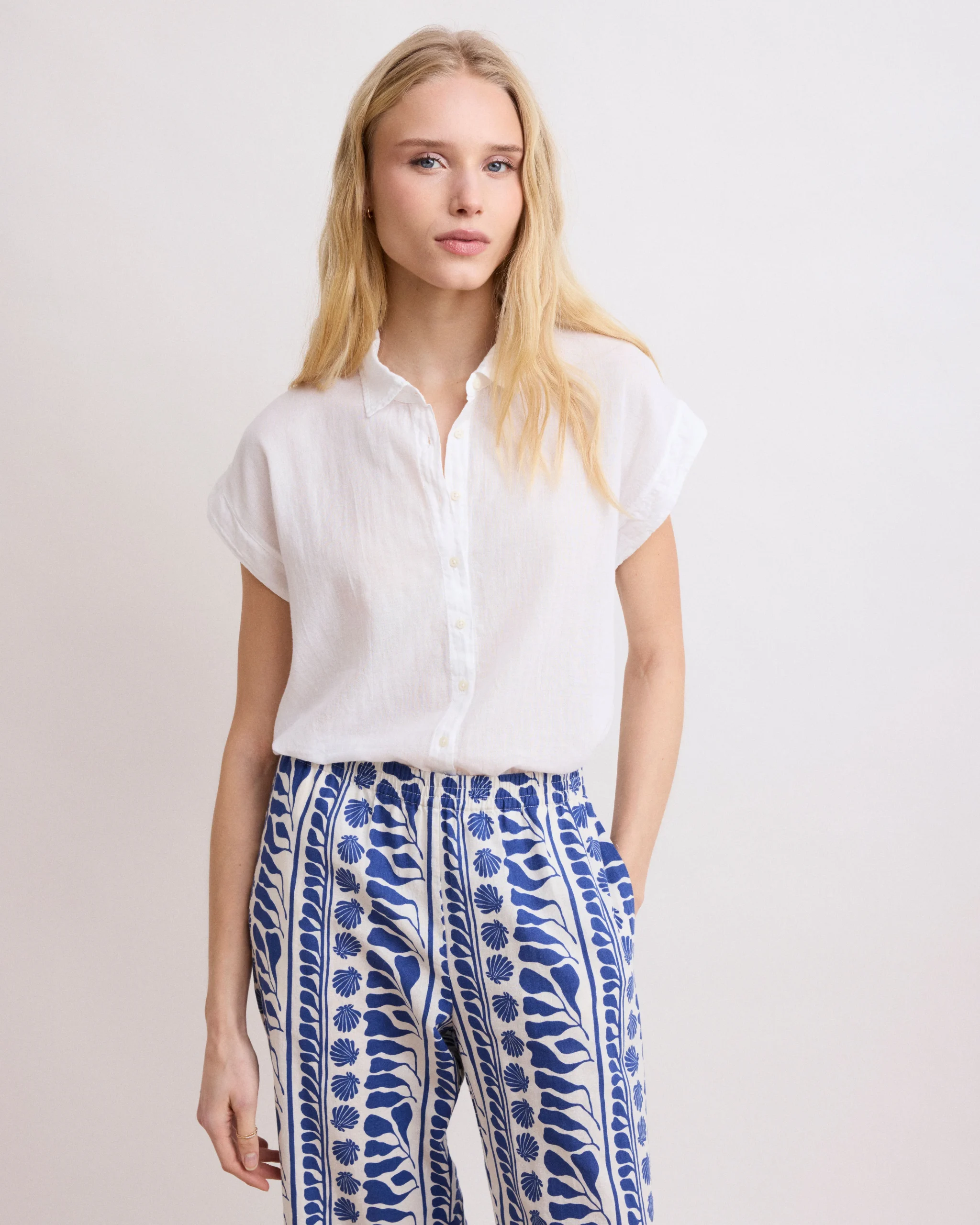 Chemise Femme en Coton Bi-Matière Ecru Taora