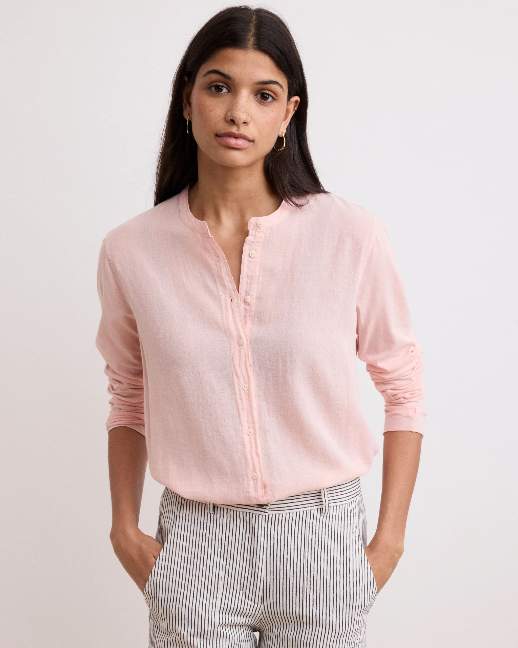 Chemise Femme en Coton Bi-Matière Rose Taora