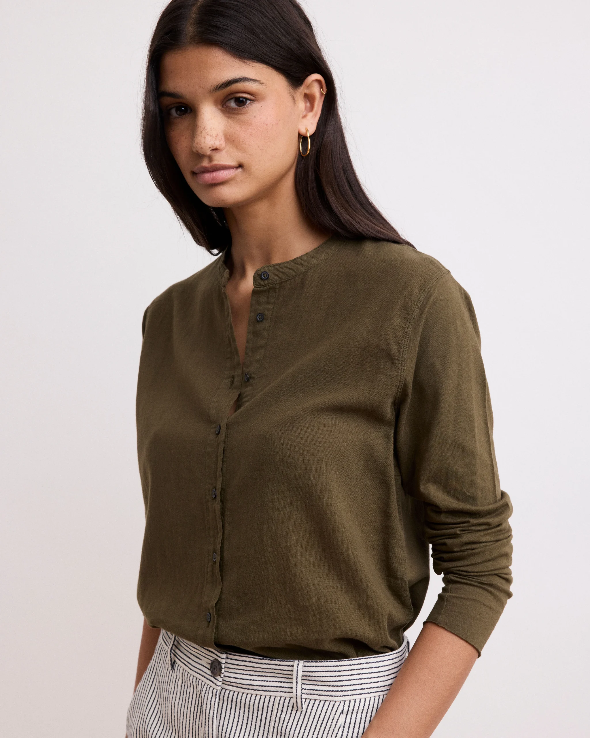Chemise Femme en Coton Bi-Matière Vert Militaire Taha