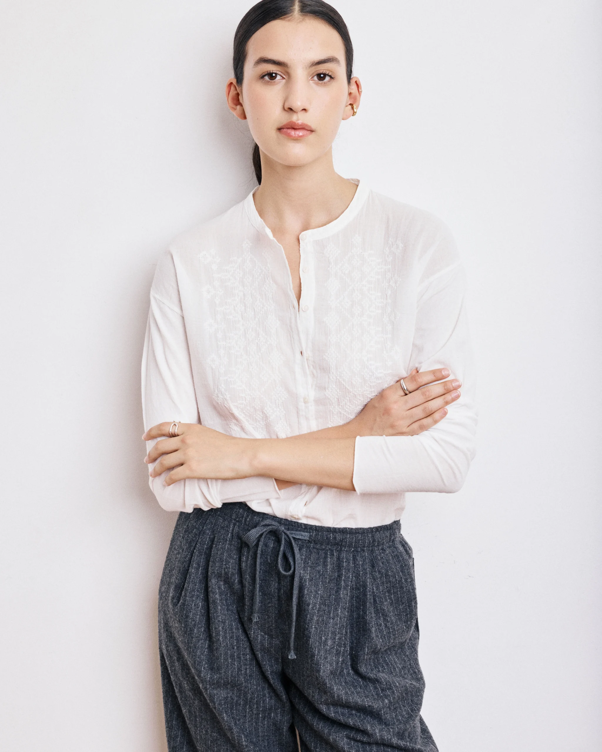 Chemise Femme en Coton Bi-Matière Ecru Tacy