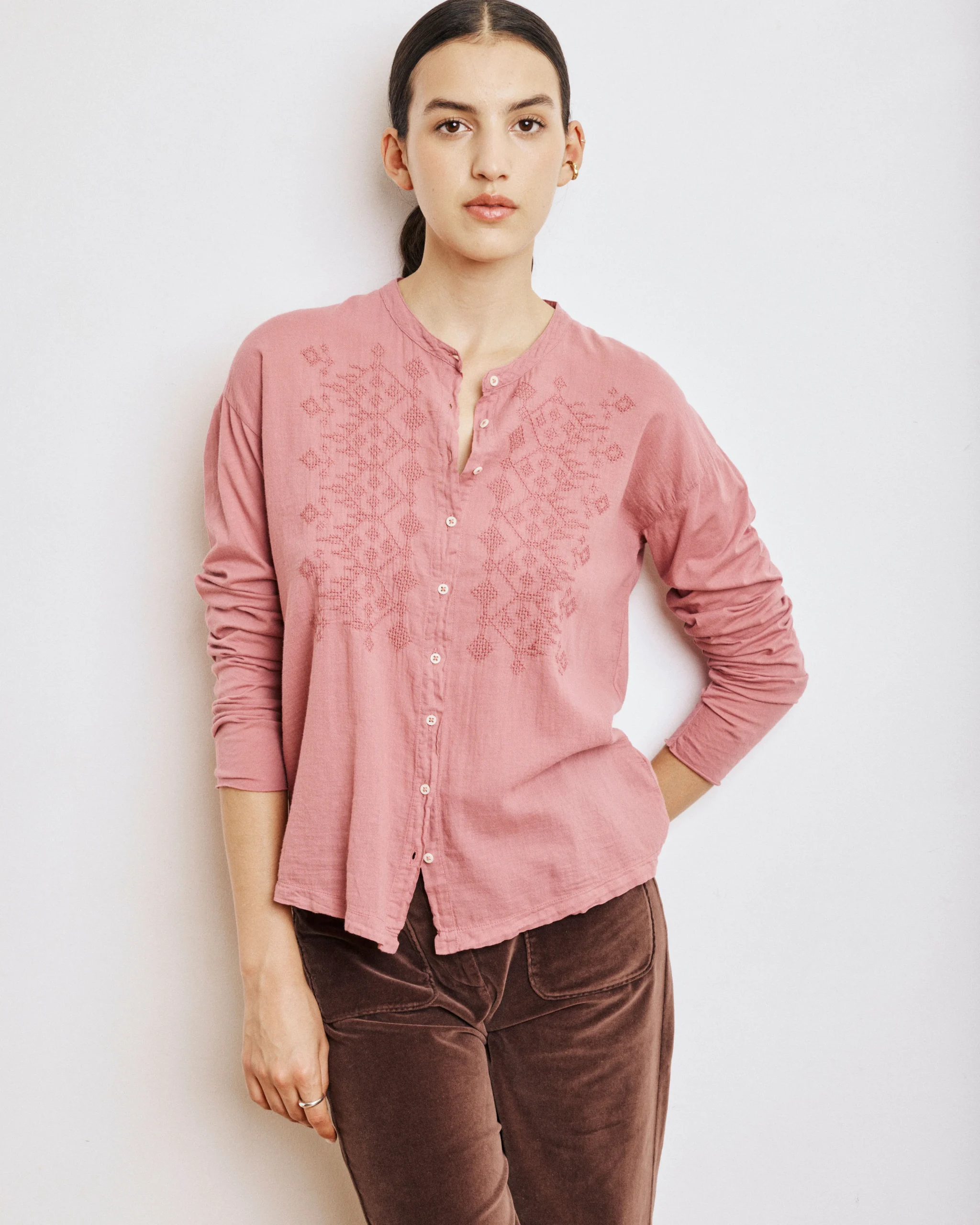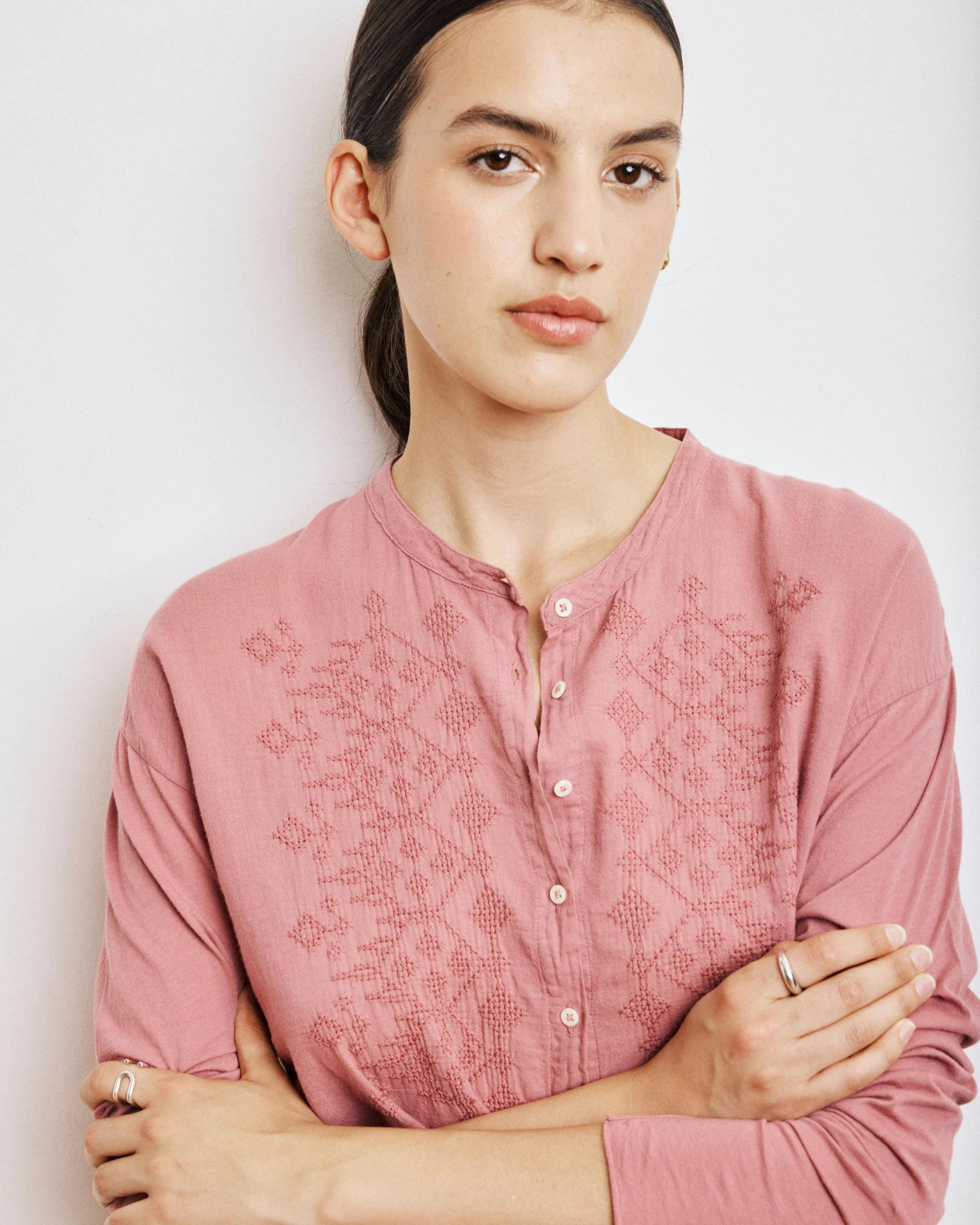 Chemise Femme en Coton Bi-Matière Rose Taha