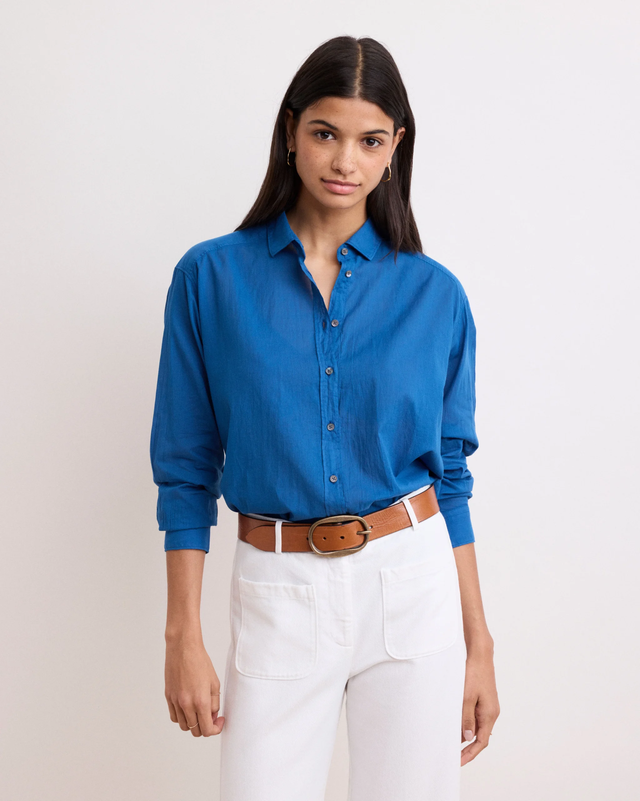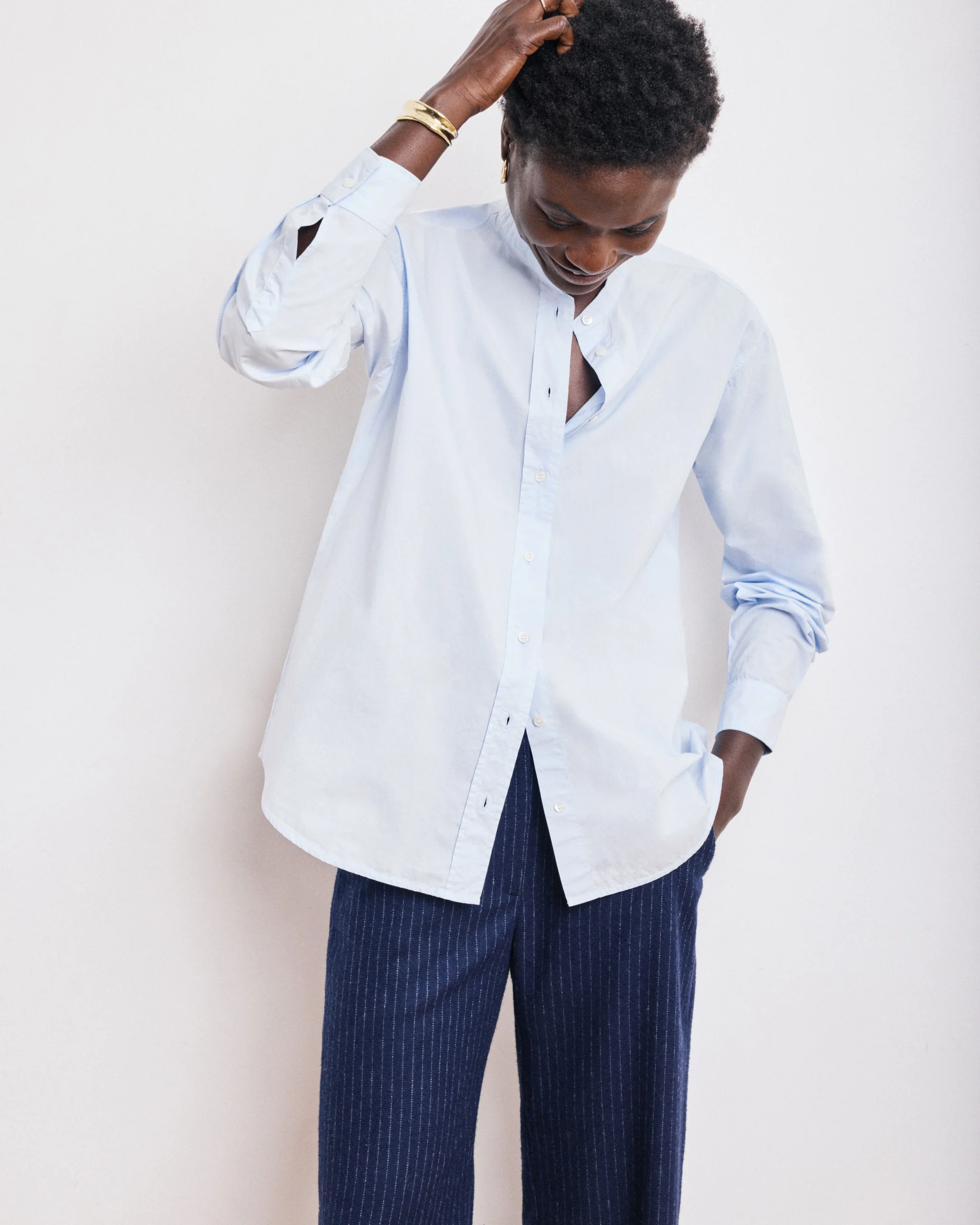 Chemise Femme en Popeline de Coton Bleu Ciel Cristal