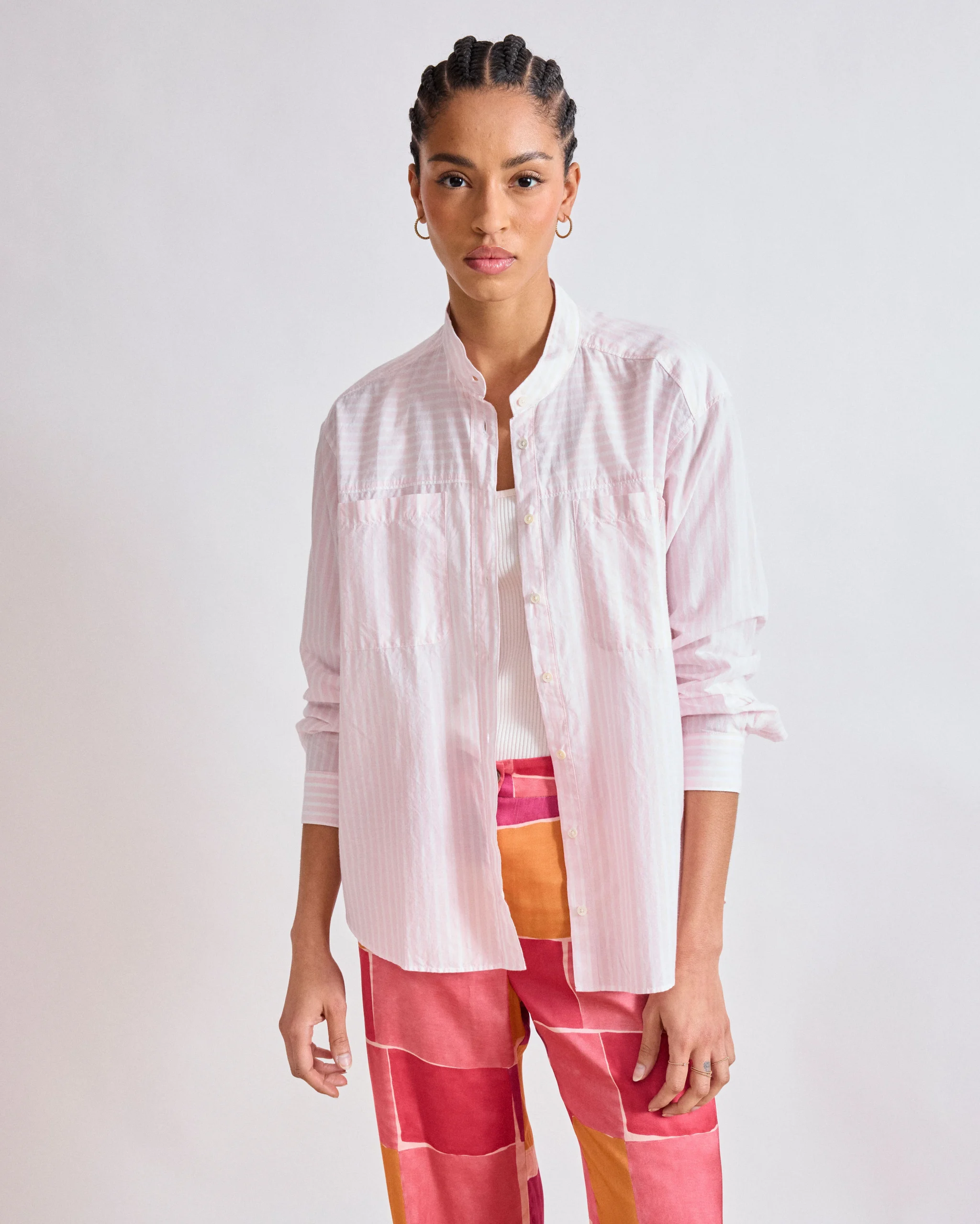 Chemise Femme en Popeline de coton rayée Rose & Blanc Cloud