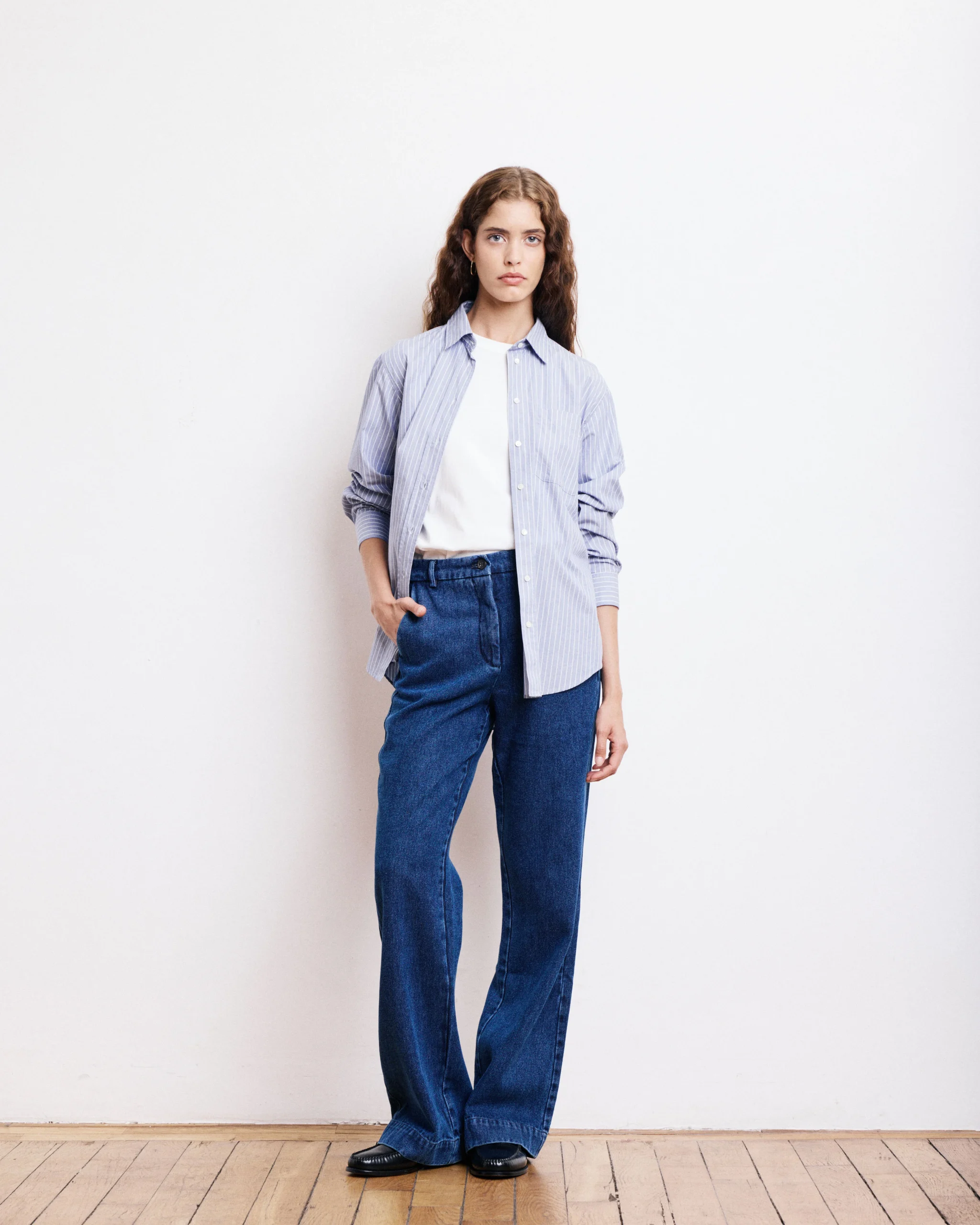 Chemise Femme en Popeline de Coton à Rayures Bleues Cinema