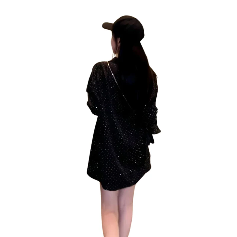 Chemise Paillette Noir Cygnes Femme Col Strass