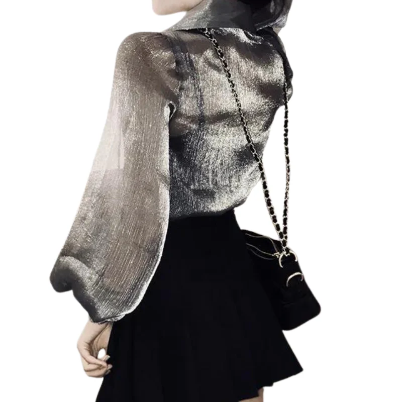 Chemise Paillette Transparente Argenté Femme