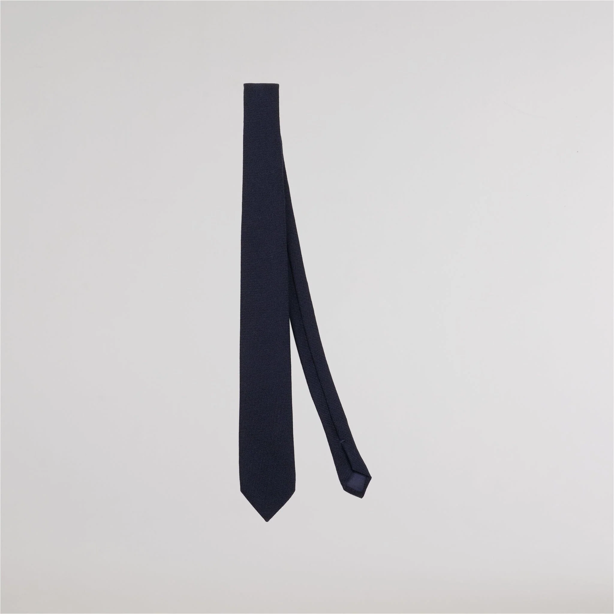 Cravate bleu foncé en laine et soie
