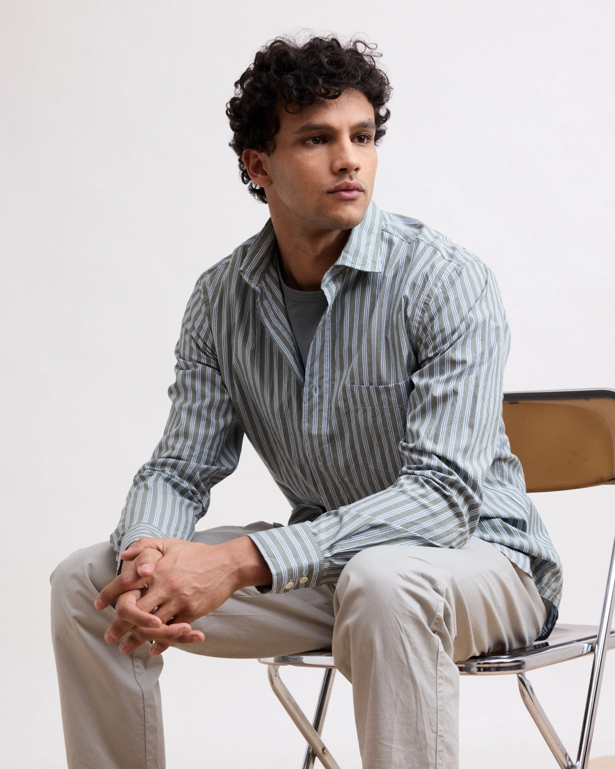 Chemise Homme en Coton Rayé Vert Paul
