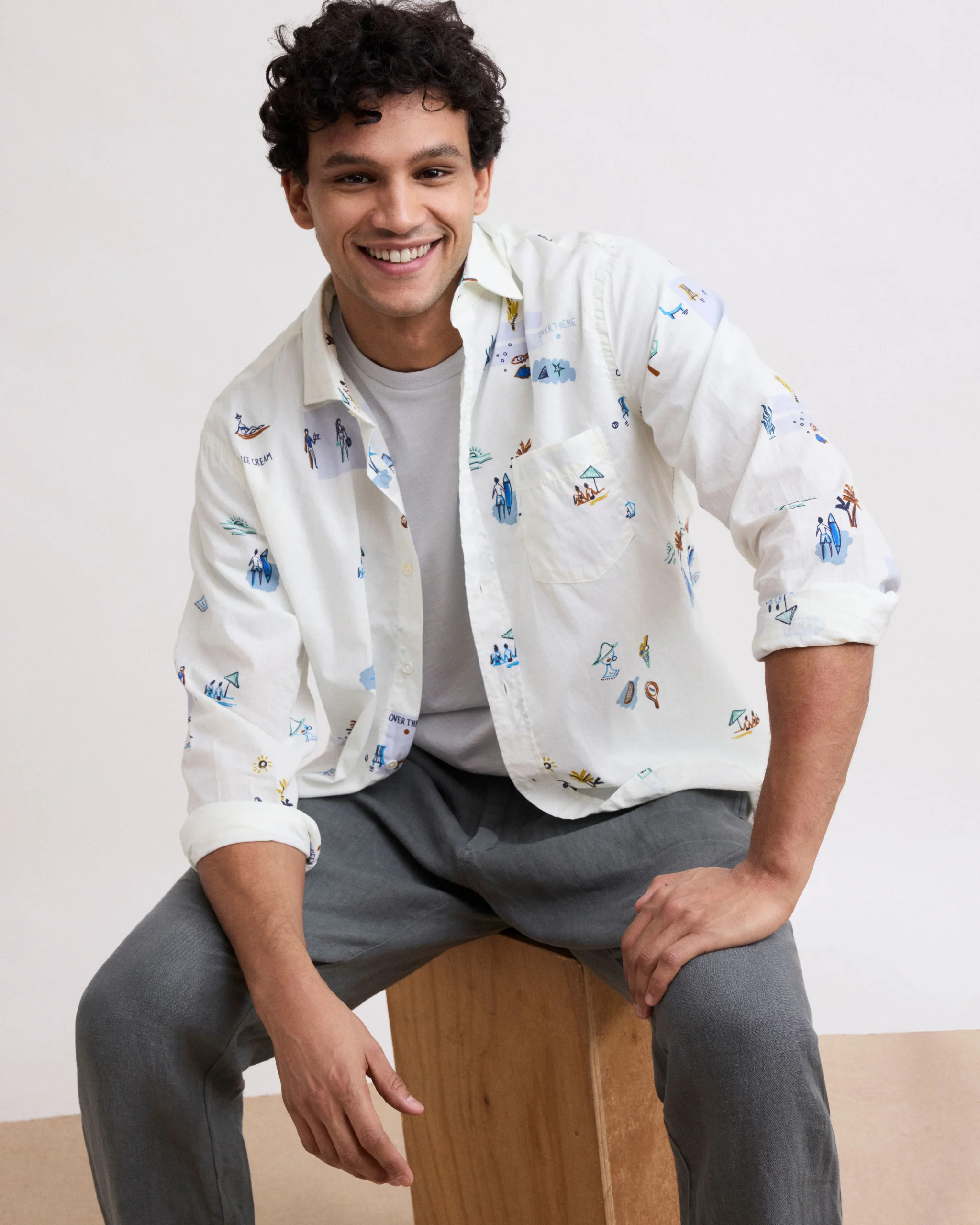 Chemise Homme en Coton Imprimé « At the beach » Blanc Paul