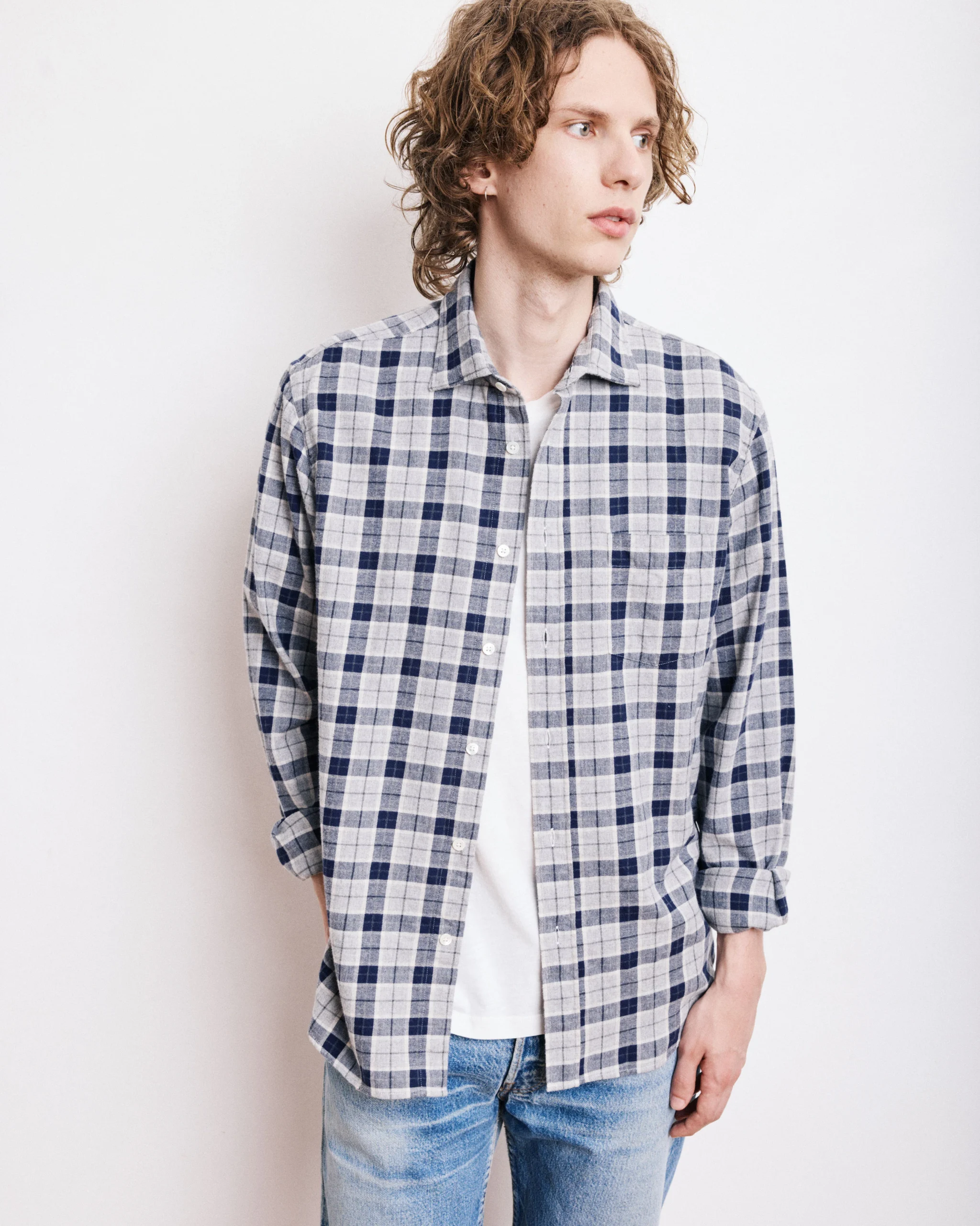 Chemise Homme en Coton Brossé à Carreaux Gris Paul