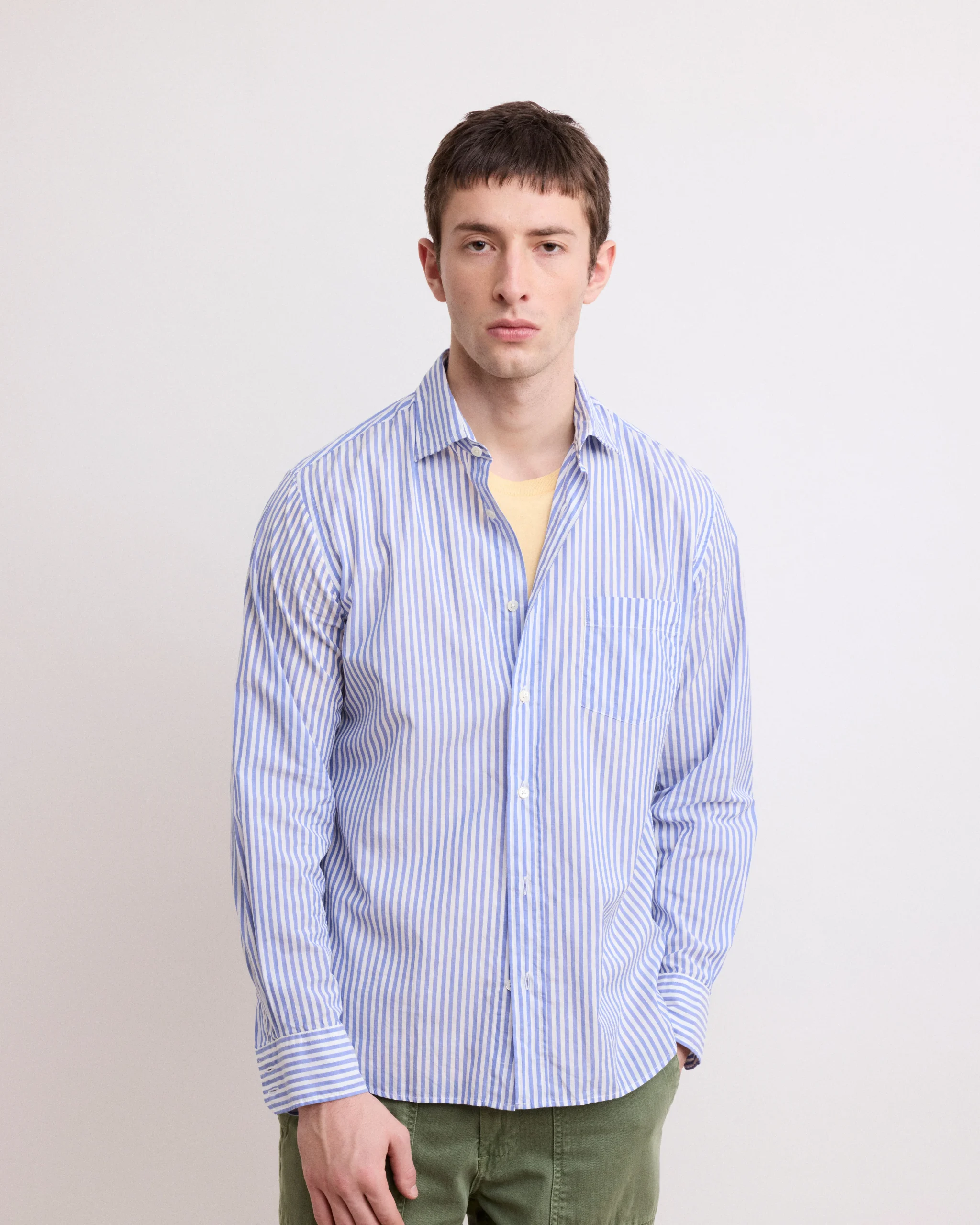 Chemise Homme en fil-à-fil rayé Bleu & Blanc Paul