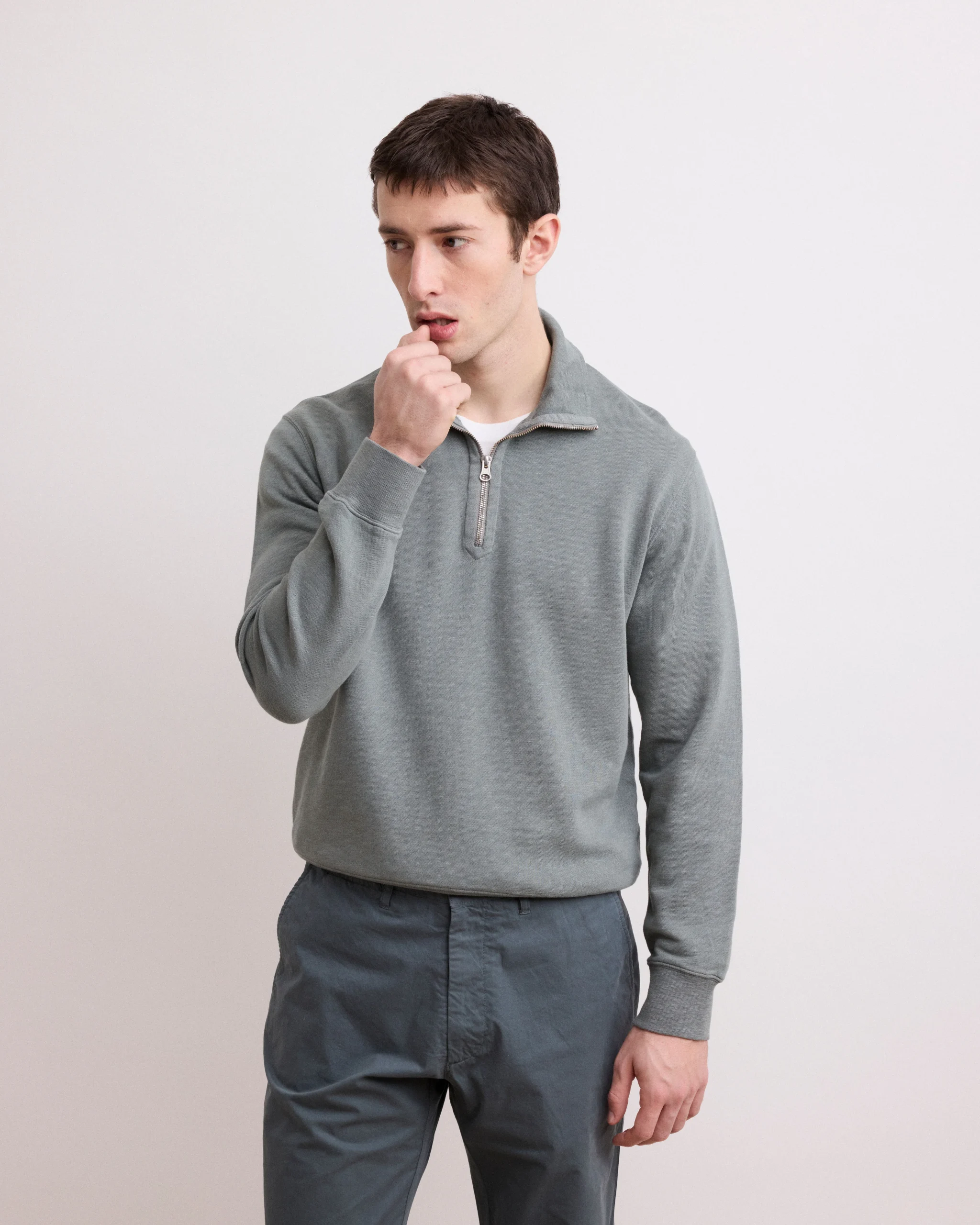 Sweatshirt Homme en Éponge Carbone Polo Zipper