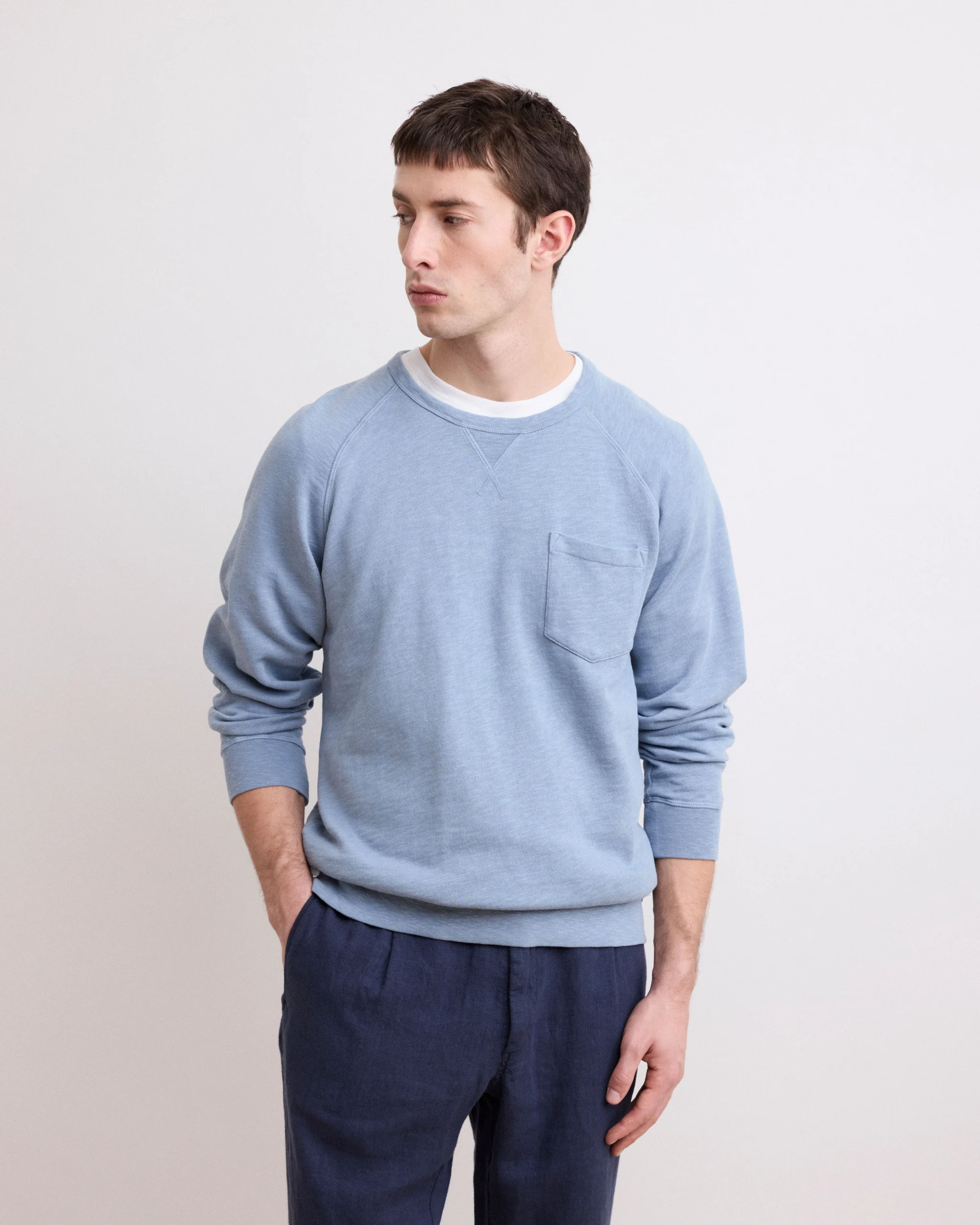 Sweatshirt Homme en Coton Flammé Vert Celadon Pocket