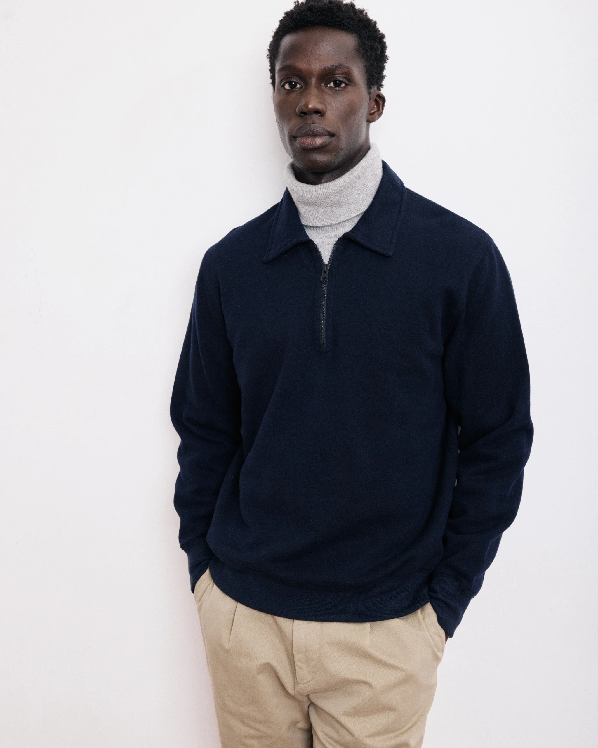 Sweatshirt Homme en Coton & Laine Bleu Marine Polo Zipper