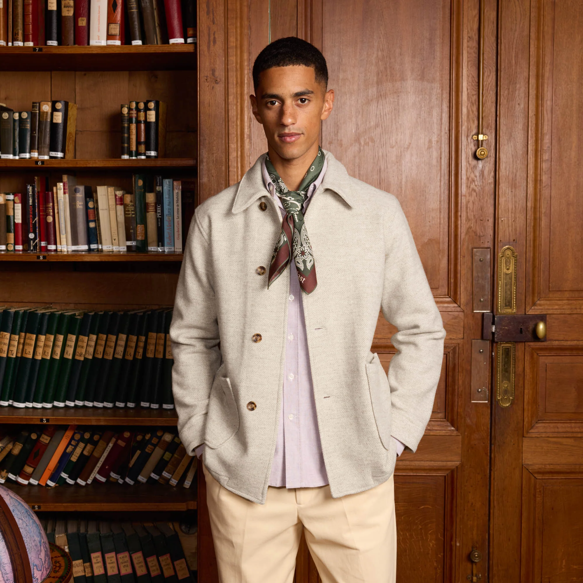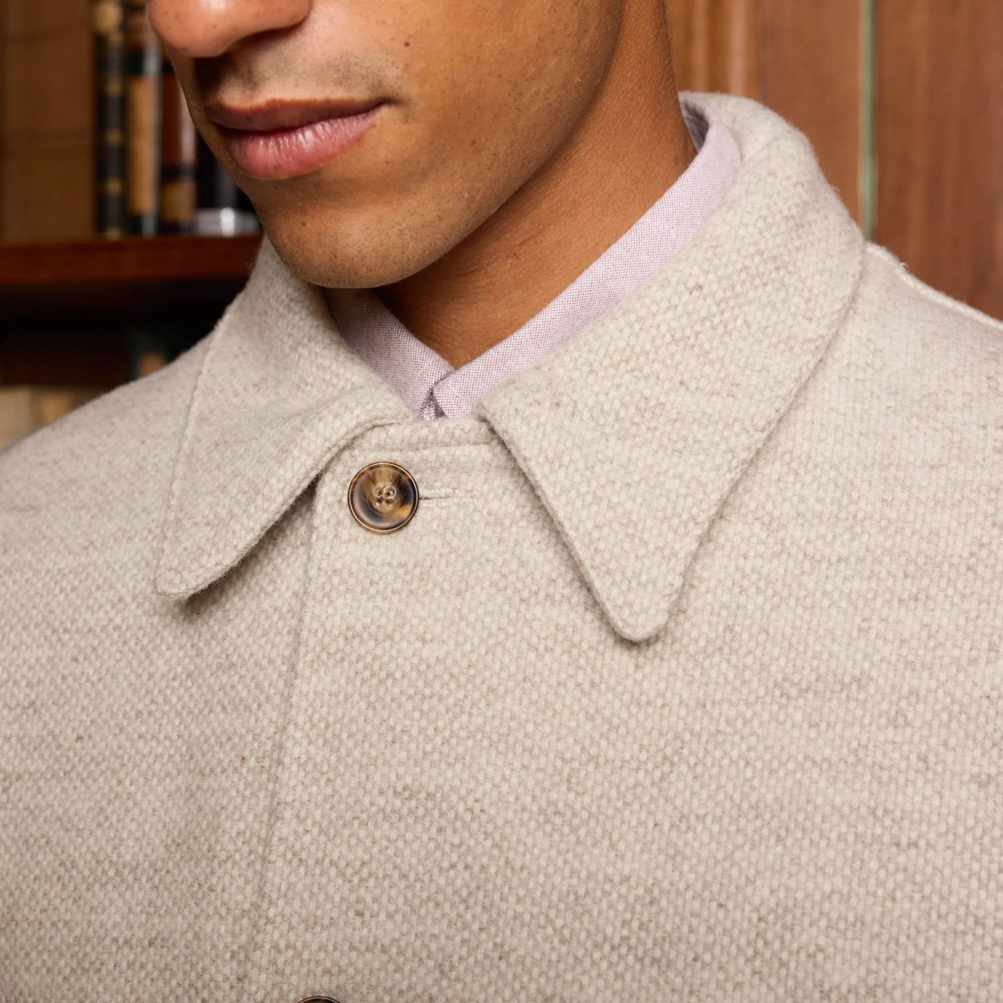 Veste de travail en laine beige chiné