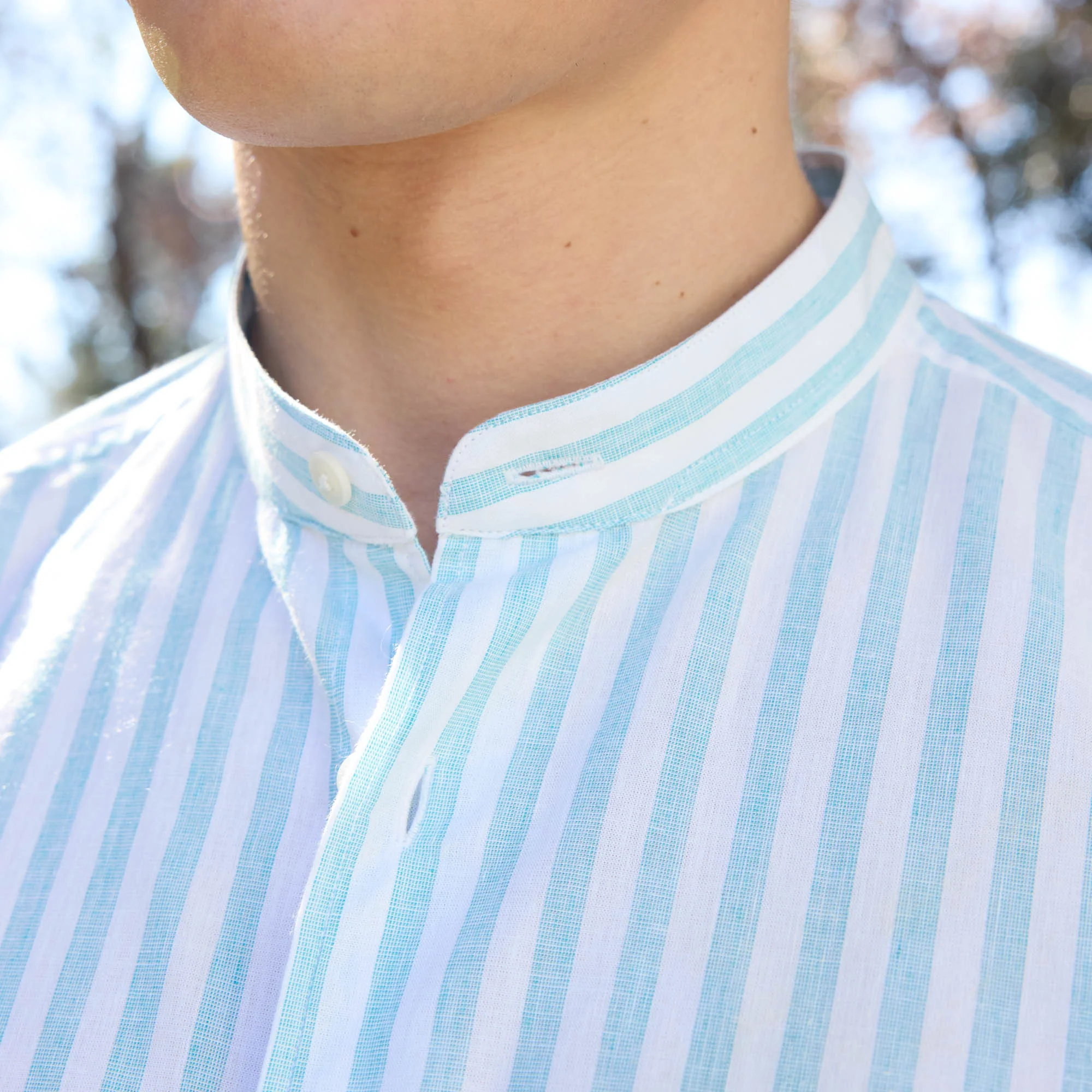 Chemise en coton et lin à rayures turquoise