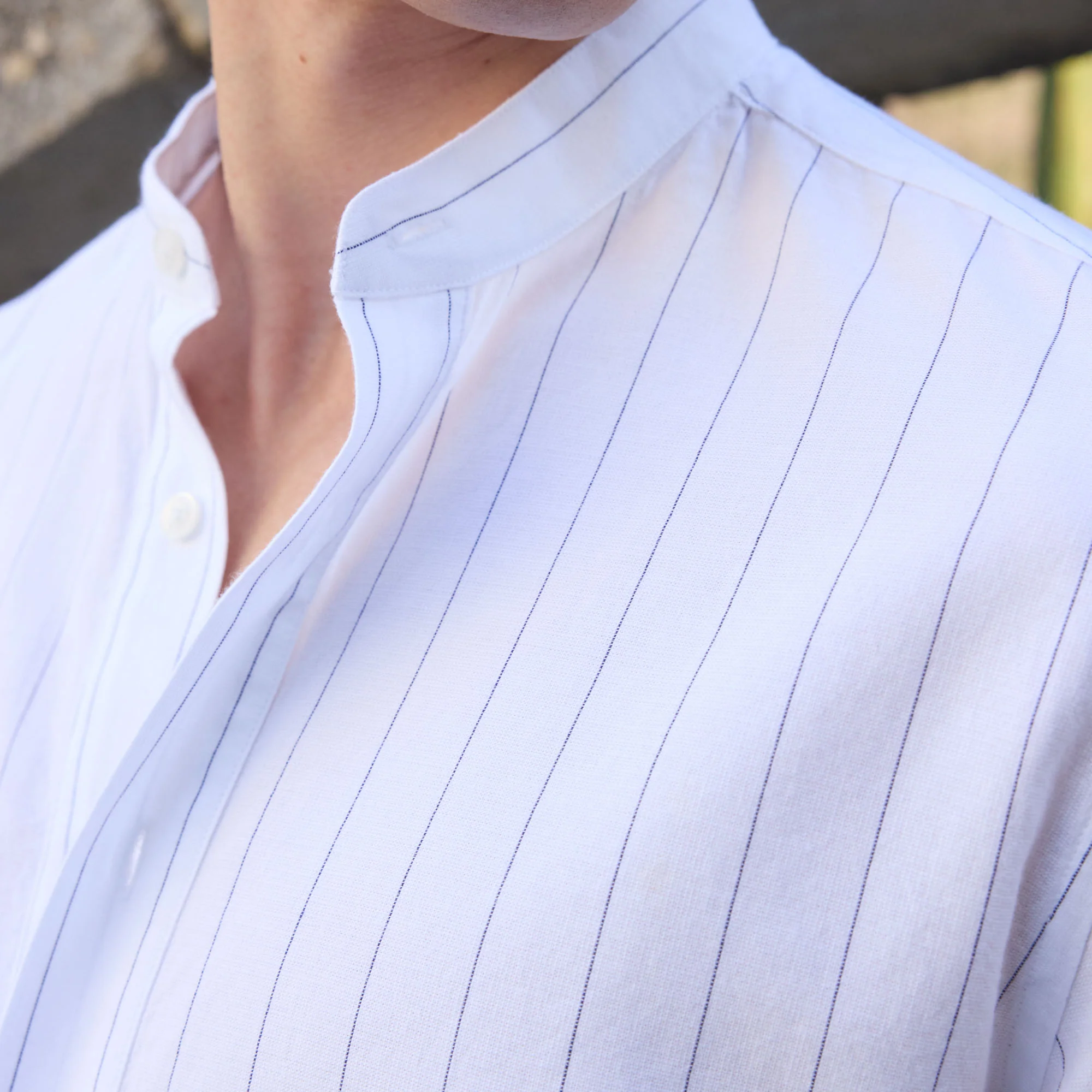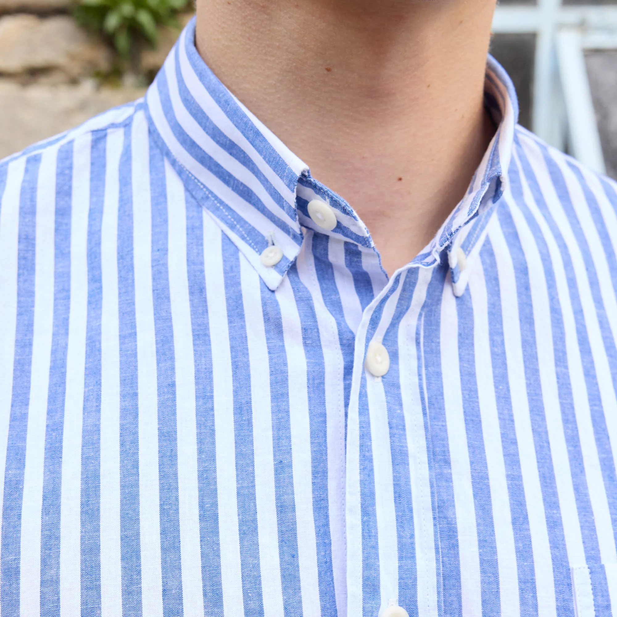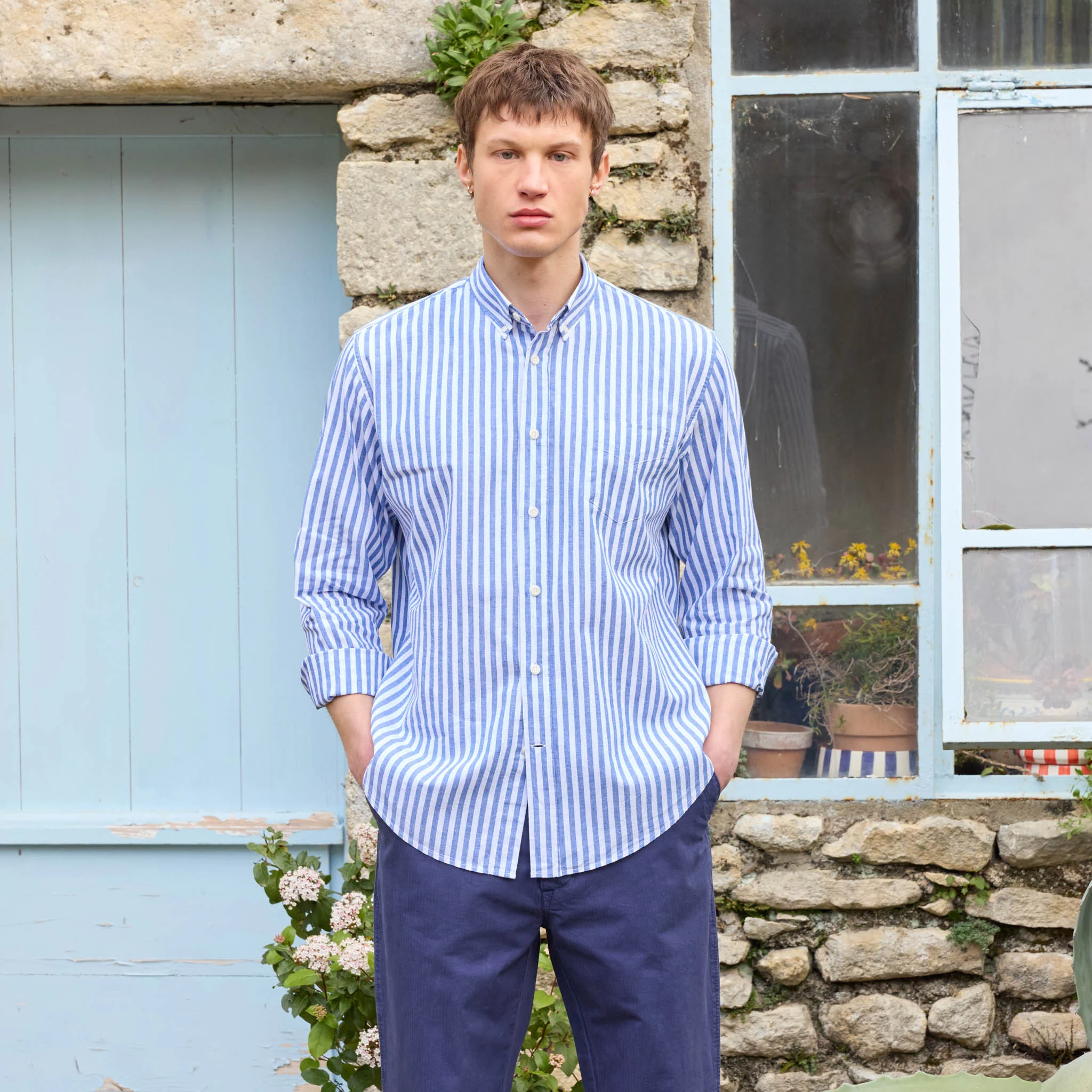 Chemise en coton et lin à rayures bleues et blanches