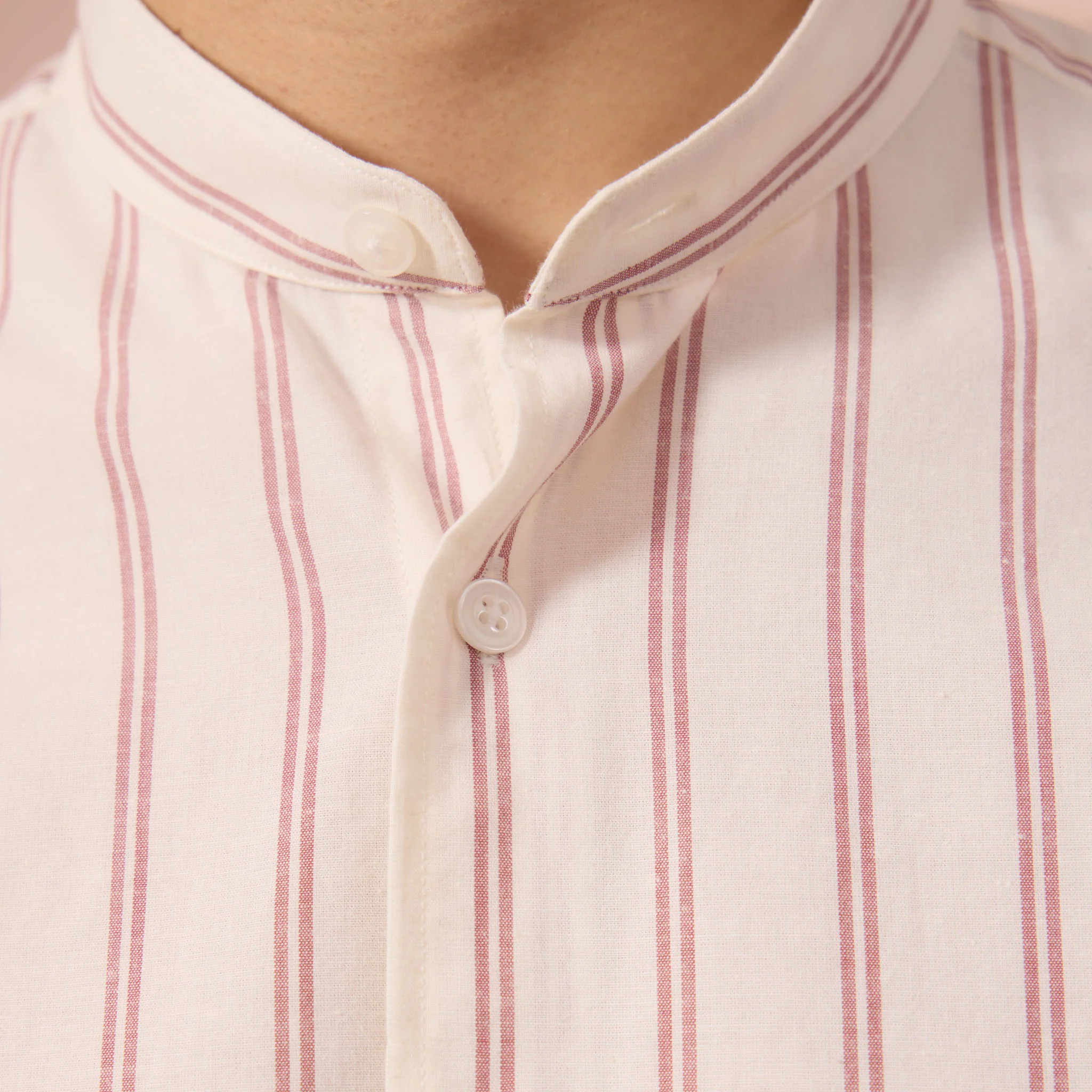 Chemise en coton et lin à rayures bordeaux