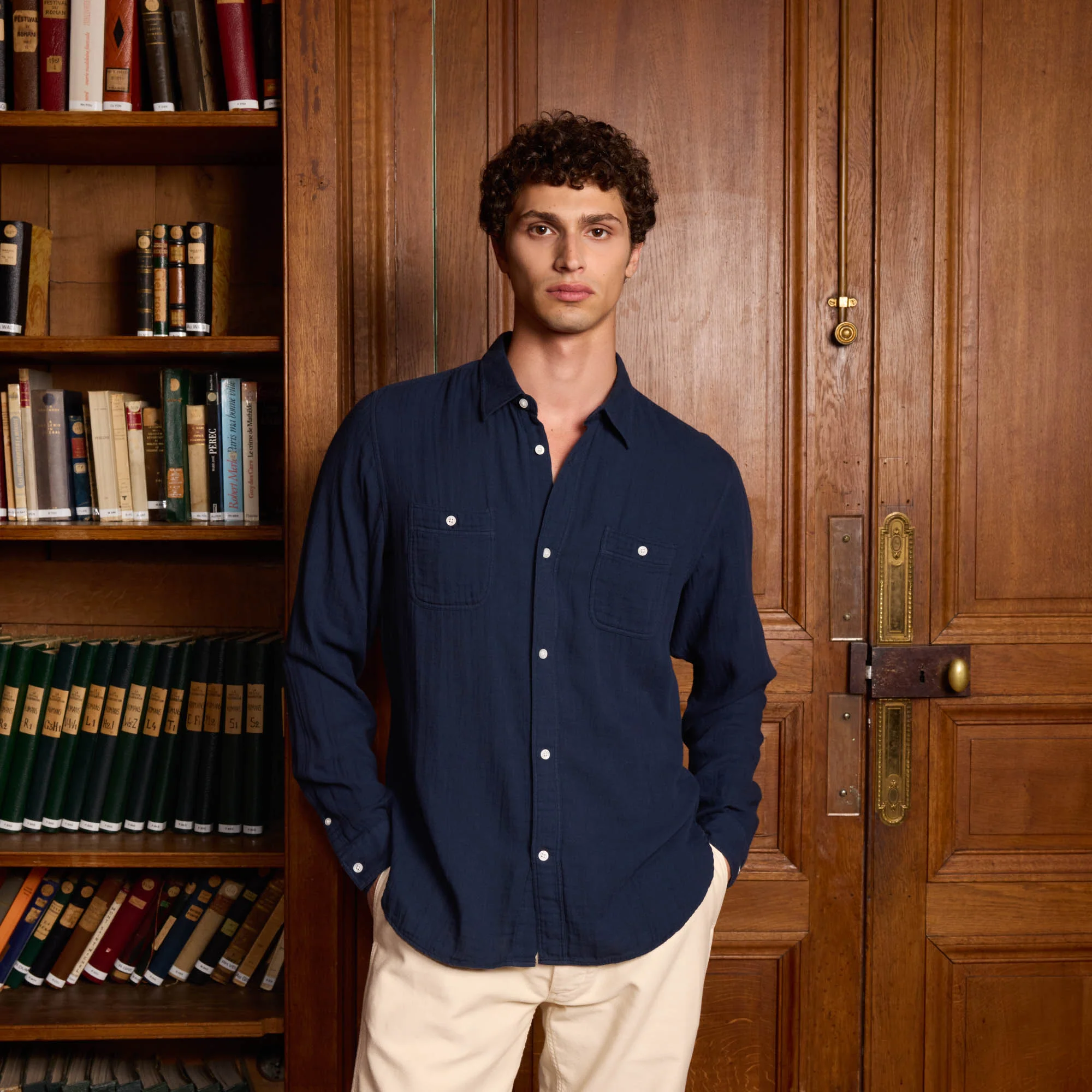 Chemise en coton bleu marine